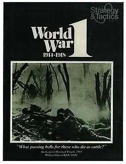 In 1975, in a move away from large and complex such as Drang Nach Osten! and Wacht am Rhein, SPI co-founder Jim Dunnigan designed some smaller games with 200 or fewer counters that could be played in a single evening. World War I was one such product, published in 1975 as a free pull-out game in Issue 51 of SPI's house magazine Strategy & Tactics. The game, with graphic design by Redmond A. Simonsen, was also published as a "folio game", packaged in a double LP-style cardstock folio. Despite good critical reception, the game was not popular and did not crack SPI's Top Ten Bestseller list.[6] In a 1976 poll conducted by SPI to determine the most popular board wargames in North American, World War I only placed 101st out of 202 games.[2]