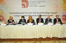 On April 7–9, 2011, the 1st World Forum on Intercultural Dialogue was held in Baku with the support of UNESCO, UN Alliance of Civilizations, Council of Europe and ISESCO and participation of official representatives from 102 countries.[4]