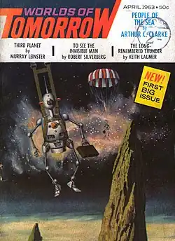 Worlds of Tomorrow was an American science fiction magazine published from 1963 to 1967, at which point it was merged into If. The first issue appeared in April 1963.[1] The last issue was published in May 1967.[1] The publishers were Barmaray Co, New York City, and then Galaxy Publishing. It briefly resumed publication from Summer 1970 to Spring 1971, producing three issues.[1] The magazine was edited in its first period of publication by Frederik Pohl, who was editor of Galaxy Publishing Co. from 1960-1969,[2] and by Ejler Jakobsson in the second. It has published fiction by such noted authors as Arthur C. Clarke, Larry Niven, Fritz Leiber, Philip K. Dick, Brian W. Aldiss, Jack Williamson and Philip José Farmer. Pohl stated in 1967 that the magazine showed a loss of $15,000 (equivalent to $141,452 in 2024) during its first incarnation.[3]