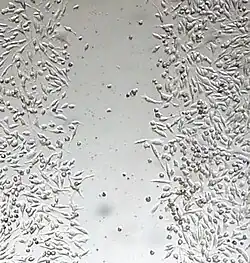 - ^ Jonkman JE, Cathcart JA, Xu F, Bartolini ME, Amon JE, Stevens KM, Colarusso P (September 2014). "An introduction to the wound healing assay using live-cell microscopy". Cell Adhesion & Migration. 8 (5): 440–51. doi:10.4161/cam.36224. PMC 5154238. PMID 25482647.