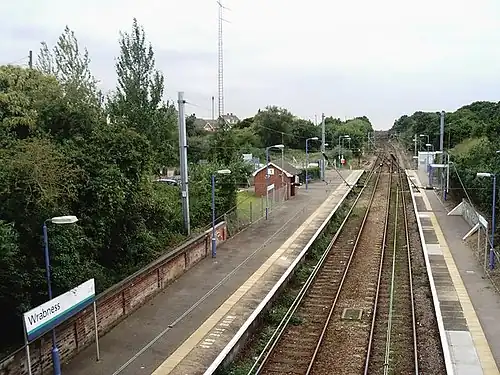 Wrabness railway station is on the Mayflower Line, a branch of the Great Eastern Main Line in the East of England, serving the village of Wrabness, Essex. It is 65 miles 6 chains (104.73 km) down the line from London Liverpool Street and is situated between Mistley to the west and Harwich International station to the east. Its three-letter station code is WRB.