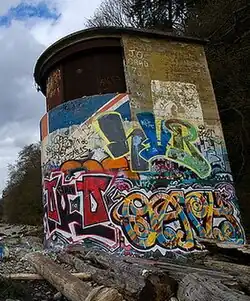The earliest evidence of Indigenous peoples inhabitation dates back to 13,000 B.C. being the hunting, fishing, logging, spiritual connection grounds for the Musqueam, referred to as "Ulksen" or "the nose".[2] The beach is reclaimed from the sea in a joint venture with the Canadian Army and UBC to train cadets for beach landings in WWI, hence the presence of the "instrument towers". In the Great Depression, nude bathing became popular due to high costs of swimsuits with men congregating on Siwash Rock in Stanley Park, to escape the puritanicalist oppression of local residents, a legacy of the Victorian era, they then flocked to Wreck Beach. The beach increased in popularity with hippies until the late 1960s when a police raid in 1970 yielded a dozen arrests. The Georgia Straight staged a nude-in protest[3] with 3,000 showing up and the charges were dropped, with the police designating the area as a "no-harm, no-foul zone" until 1991 when it was officially designated a legally recognised nudist beach.[4] On January 25, 1977, the Citizens Concerned for Coward's Cove was formally established, then changed to Wreck Beach Committee, then to the Wreck Beach Preservation Society in 1983. The WBPS has fought against these developments: a 20-million cubic meter dredging operation behind the North Arm breakwater; a parallel trail from Trail 6 to Trail 7 (One already built there quietly by two unknowns); a proposal to barge millions of gallons of "jet-fuel A" past Wreck Beach weekly; toe-to-cliff-top condominiums (proposed in 2004);[5] a 20-foot high, 10-foot wide sea wall over the beach it would supposedly have been meant to protect; viewing platforms which would have changed the interpretation of the Canadian Criminal Code insofar as nudity was concerned; the cutting of 40-acres of cliff face forest and then, the shaving of the cliffs in those 40-acres, and the construction of an RCMP service road to and along the beach. Current threats to the beach area include a restaurant overlooking the beach, the elimination of all curb-side parking, the grassing in of Marine Drive, and possible washrooms on the beach level instead of above and out of sight of the beach.[6] In 2012, permanent toilet outhouses were installed.[7]