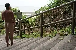 Clothing is optional throughout Wreck Beach.[8] Due to Wreck Beach's proximity to the University of British Columbia, many students and some faculty and staff visit the beach. In recent years many beach users have objected, on both privacy and environmental grounds, to the university's plans to construct new buildings close to the cliff edge and partially overlooking the beach.