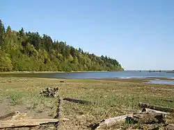 Wreck Beach (Squamish: Ts'at'lhm) is a clothing-optional beach located in Pacific Spirit Regional Park, a part of Electoral Area A just west of Vancouver, British Columbia, Canada.[1] The clothing-optional section is clearly marked with signs and stretches about 6.7 kilometres or 4.2 miles from Acadia Beach, in the north, to the Booming Grounds Creek on the north arm of the Fraser River. The main trail to the beach has approximately 400 steps.
