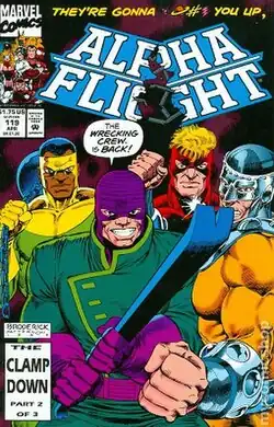 The Wrecking Crew is a team of four supervillains—the Wrecker, Bulldozer, Piledriver and Thunderball—appearing in American comic books published by Marvel Comics. While not featured on the cover, the Wrecking Crew's first appearance is in The Defenders #17 (Nov 1974).[2]