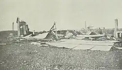 The decline of Wrightville continued. In 1928, it was described as, "a sleeping village, where quietness prevails, though many old residents are content to remain there", and a fine house, once that of the mine's general manager, was rented for only a shilling a week.[166] On 28 February 1927, the Anglican church (St David's), which had not been used for several years, blew down in a storm; its ruins were sold at public auction and the money used for repairs to the neighbouring rectory.[167][165] In 1929, the Catholic church building was up for sale.[168] By 1930, the village was fighting, ultimately successfully it appears, to retain the mail service from Cobar to Wrightville, although there was no post office between 1933 and 1935.[169][72][170]