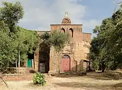 The church's walls and ceilings show signs of damage from fire, which local tradition attributes to a 16th-century sack by Ahmad ibn Ibrahim al-Ghazi.[7] The churchyard includes the remains of several Italians interred there during the time of the Second Italo-Ethiopian War. Around 1958, a cement floor was added and the roof to the porch was raised.[3] Munro-Hay notes a number of modern improvements which include a modern bell-tower and a new gatehouse to the compound around the church.[4]
