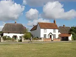 Wychert or witchert (with a number of variant spellings existing and meaning "white earth") is a natural blend of white chalk and clay[1] which is mixed with straw to make walls and buildings, usually then thatched or topped with red clay tiles.