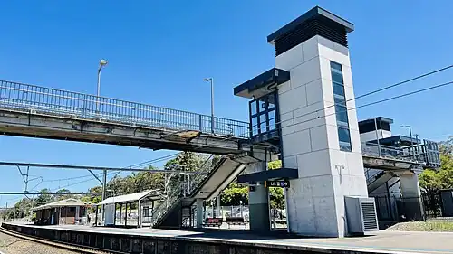 ![]() Southbound view of Platform 2, concourse and footbridge, November 2022 | |||||||||||||||