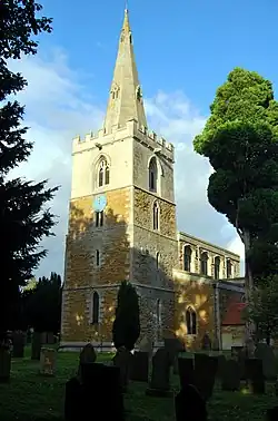 The parish church dates back to the 13th century and was built in the "Early English style on a cruciform plan"; the third storey of the tower and the spire are in the Perpendicular style.[7] The church priest is also responsible for Buckminster and Sewstern (South Framland). The church saw the wedding of footballer Michael Carrick and Lisa Roughead in June 2007.