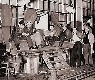 The tense situation was repeated in 1941 when Mortimer played a leading role in a strike against the North American Aviation plant located in Inglewood, California.[1] During the 22 months from August 1939 to June 1941 Stalin and Hitler supported each other as war raged in Europe. Mortimer and all Communist local union officials opposed American aid to Britain's war against Germany. They supported strikes in war industries that were supplying Lend Lease aircraft to Britain. At the North American factory Mortimer and the local UAW negotiators demanded the starting pay for new employees be raised from 50 cents an hour to 75 cents, plus a 10 cents raise for their 7,000 current members. Mortimer defied the national UAW no-strike pledge and suddenly unleashed a wildcat strike on June 5. It closed the plant that produced a fourth of all the fighter planes made in the U.S. The UAW national leader Richard Frankensteen flew in but was unable to get the Mortimer to back down.[15] So the White House intervened with the approval of national CIO leadership. President Franklin Roosevelt on June 8 sent in the California national guard to reopen the plant with bayonets. Strikers were told to return immediately or be drafted into the US Army.[16] Mortimer was ordered by UAW headquarters to energetically exert his full influence upon the strikers to go back to work. When Mortimer refused this instruction, he was immediately fired from his union post.[17] However two weeks later when Germany suddenly invaded the USSR on June 22, all the Communist activists suddenly became the strongest supporters of war production; they crushed wildcat strikes.[18][19]