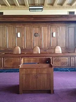 The Wyoming Supreme Court is the highest court in the U.S. state of Wyoming. The Court consists of a Chief Justice and four Associate Justices. Each Justice is appointed by the Governor of Wyoming from a list of three nominees submitted by the judicial nominating commission,[1] for an eight-year term.[2] One year after being appointed, a new justice stands for retention in office on a statewide ballot at the next general election.[3] If a majority votes for retention, the justice serves the remainder of the term and may stand for retention for succeeding eight-year terms by means of a nonpartisan retention ballot every eight years.[3] A justice must be a lawyer with at least nine years' experience in the law, at least 30 years old, and a United States citizen who has resided in Wyoming for at least three years.[4] Justices must retire when they reach 70 years of age.[5]