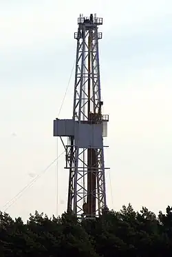 The Isle of Purbeck's oil industry began in 1936 with the first unsuccessful and then experimental wells drilled at Broad Bench near Kimmeridge by D'Arcy Exploration.[5] The area had long been mined for oil shale and tar, but was only prospected for crude oil in the 1950s.[7] It was not until 1959 that a borehole at Kimmeridge showed that oil was seeping out, and 1960 that BP's Kimmeridge Oil Field was discovered.[5]