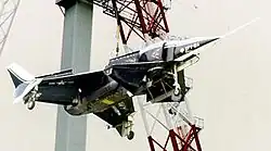 To reduce costs, the nose from the Douglas A-4 Skyhawk and intakes from the F-4 were used. Engine rig testing began in 1974.[3] Free-flight model tests conducted at the NASA Langley full-scale wind tunnel showed the projected thrust augmentation levels were highly optimistic, and that the aircraft would most likely be incapable of vertical flight on the thrust available, while the design remained suitable for conventional flight.[2]