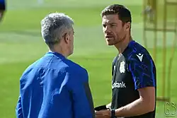 Xabier Alonso Olano (Basque: [ˈʃaβi aˈlons̺o oˈlano], Spanish: [ˈʃaβj aˈlonso oˈlano]; born 25 November 1981) is a Spanish professional football manager and former player who is the head coach of La Liga club Real Madrid. He is regarded as one of the best midfielders of his generation and was known for his range of passing and long distance shooting.[3][4][5][6] Alonso is also currently considered to be one of the best young managers in the world.[7]