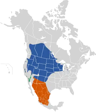 | Range of X. xanthocephalus Breeding range Wintering range Year-round range
