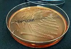 Sensitivity testing requires nonstandard culture techniques (incubation at 30 °C).[15][16] Testing at the wrong temperature results in isolates being incorrectly reported as being susceptible when they are, in fact, resistant. Disc diffusion methods should not be used, as they are unreliable, and agar dilution should be used instead.[17][18]