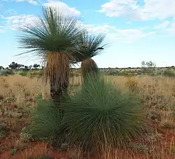 Xanthorrhoea thorntonii, commonly known as Cundeelee grasstree, Cundeelee blackboy,[2] desert grasstree,[3] yacka[4] or grasstree, is a species of grasstree of the genus Xanthorrhoea native to central Australia.[5] It is known to the Pitjantjatjara people as kata-kultu, kata-puru, ulpa or urara, the Warlpiri people as yurlurnkuru and the Arrernte as lunkere. X. thorntonii is the only grass tree found in Central Australia including the Great Sandy Desert, Great Victoria Desert and MacDonnell Ranges.[4]