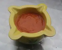 Xató (Catalan pronunciation: [ʃəˈto]) is a typical Catalan dish. It is a sauce made with almonds, hazelnuts, breadcrumbs, vinegar, garlic, olive oil, salt, and the nyora pepper. The sauce is often served with an endive salad prepared with anchovy, tuna and dried and salted cod (bacallà).