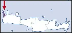 This species is endemic to Greece, where it occurs in the Gramvousa Peninsula in north-western Crete.[1][3][4]