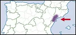 This species is endemic to the southern half of the province of Tarragona in Catalonia, Spain.[1][3][4]