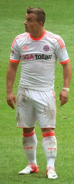 On 9 February 2012, Basel announced that Shaqiri had accepted a transfer to German club Bayern Munich of the Bundesliga for the 2012–13 season.[18] The transfer fee was a reported €11.6 million, with Shaqiri signing a four-year contract with the German club which would last until 30 June 2016, and which paid him around €2 million per season.[19] He faced competition for a place in the midfield from established internationals Franck Ribéry, Arjen Robben, Toni Kroos and Thomas Müller.[8]