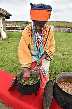 On the day of burial, before extended family members disperse to their homes, the ukuxukuxa (cleansing) ritual occurs and a goat or sheep or even a fowl is slaughtered.[23][24]