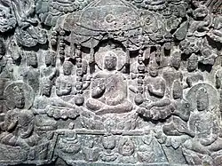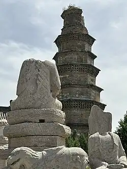 The Xiangtangshan Caves (simplified Chinese: 响堂山石窟; traditional Chinese: 響堂山石窟; pinyin: Xiǎngtángshān Shíkū; lit. 'Mountain of the Echoing Halls Caves') is a group of Buddhist cave temples located in the Fengfeng Mining District about 20 km southwest of the City of Handan, in Hebei province, China. The oldest cave temples in the group date to the Northern Qi, one of the Northern dynasties in the sixth century, and were sponsored by the dynasty's court. The caves are located about 20 km to the northwest of the site of Ye, the capital of the Northern Qi and were carved into dense limestone cliffs on mountains that are part of the Taihang Mountains.[1]