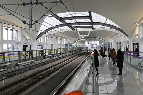Xiaotang (Chinese: 萧塘; pinyin: Xiāotáng) is a station on Line 5 of the Shanghai Metro. Located at Daye Highway and Huhang Highway within Xiaotang village in the city's Fengxian District, the station is located on the main branch of Line 5 and opened as part of the southern extension of Line 5 on 30 December 2018.[1] It is an elevated station.[2][3]