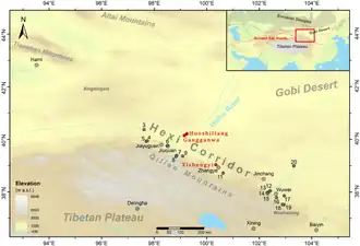 - ^ a b c d Li, Xin; Wei, Wenyu; Ma, Minmin; Lu, Minxia; Du, Linyao; Yang, Yishi; Chen, Guoke; Ren, Lele (2023). "Transformation of animal utilization strategies from the late Neolithic to the Han Dynasty in the Hexi Corridor, northwest China: Zooarchaeological and stable isotopic evidence". Frontiers in Earth Science. 10. Bibcode:2023FrEaS..1064803L. doi:10.3389/feart.2022.1064803. ISSN 2296-6463.