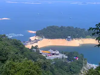 Xinfengjiang Reservoir (simplified Chinese: 新丰江水库; traditional Chinese: 新豐江水庫; Jyutping: san1 fung1 gong1 seoi2 fu3) or Wanlü Lake (万绿湖; 萬綠湖; maan6 luk6 wu4) is a man-made lake located in Heyuan, Guangdong, China, formed since the damming of the Xinfeng River (a tributary of Dong River) by the Xinfengjiang Dam. The dam is about 6 km away from the downtown of Heyuan and 170 km away from Guangzhou. It is the largest lake in Guangdong covering an area of 370 km2 and it has a storage capacity of 13.98 km3.[1]