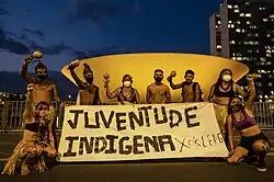 ![]() Young Xokleng demonstrating in Brasília for the Indigenous Ibirama-La Klãnõ Lands (2021) | |