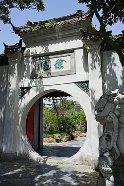 ![]() The entrance to Xu Garden, its name written right to left in the archaic style and guarded by a foo dog | |||||||||