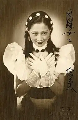 In 1927, Xu attended the China Song and Dance School run by Li Jinhui, who is now considered the "Father of Chinese pop music". She also joined Li's Bright Moon Song and Dance Troupe and toured many cities in China and Southeast Asia.[1][2] She married Li, who was 18 years her senior, in 1930, and gave birth to a daughter named Xiaofeng.[3]: 73