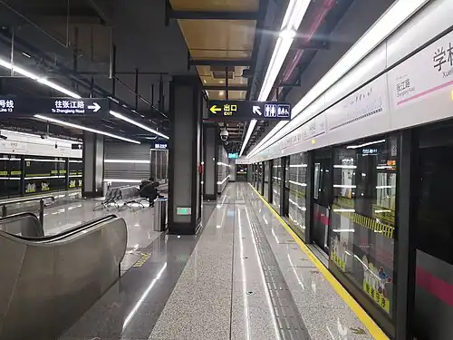 Xuelin Road (simplified Chinese: 学林路; traditional Chinese: 學林路; pinyin: Xuélín Lù) is a station on Line 13 of the Shanghai Metro,[1] part of phase three of the line. Located at Zhongke Road and Gebaini Road in Pudong, Shanghai, the station opened with the phases 2 and 3 extensions of Line 13 on 30 December 2018.[2][3]