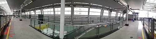 The Line 6 station is a three-storey elevated station. The ground floor is the concourse, the second floor is a pedestrian overpass, and the third floor are the platforms for Line 6.