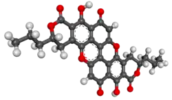 (3S,11S)-3,4,11,12-Tetrahydro-8,16-dihydroxy-3,11-dipropyl-1H,7H-dipyrano[4,3-a:4',3'-j]-peri-xanthenoxanthene-1,7,9,15-tetrone peri-xanthenoxanthene-2,8-dicarboxy-lic acid 4,10-dihydro-3,9-dihydroxy-1,7-bis(2 S-hydroxy-pentyl)-4,10-dioxo-di δ-lactone | |