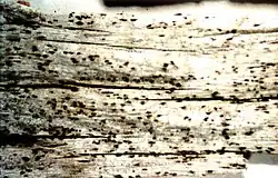 Xylographa parallela is a species of lichen in the family Xylographaceae, and the type species of the genus Xylographa. Although it has been recorded mostly in montane and boreal forests between latitudes of about 35°N to 65°N, it is, however, the only species of Xylographa that has also been recorded from the Southern Hemisphere. It usually grows on conifer wood (very rarely on conifer bark), such as logs, snags, fenceposts, and rails.[1]