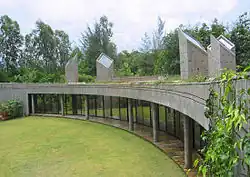The complex was designed by Pune-based Master Architect Prof.Christopher Charles Benninger.[2] His team included architects Deepak Guggari and Harsh Manrao.[3] This organic complex was completed in 2003 and has won national awards, including the 2006 Indian Institute of Architects (IIA) Award for the best Public Building of the year because of its sustainable environment and unique relationship to the landscape.
