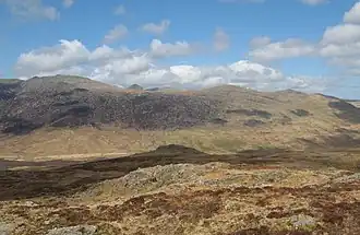 The summit is grassy with a few small rock outcrops and is marked with a small cairn. The views are limited to the bulky neighbours of Moel Siabod, Tryfan and Glyder Fach. The ridge continues eastwards to Gallt yr Ogof.[1]