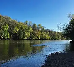 Additionally, the region is home to a number of national and state parks and other natural wonders including Blowing Rock, parts of the Blue Ridge Parkway, Tanglewood Park, the 45,000 acre Carolina Sandhills National Wildlife Refuge and the 50,000 acre Uwharrie National Forest.[2] The Pee Dee National Wildlife Refuge, an 8,443-acre wildlife preserve for waterfowl, lies completely within the confines of the watershed.[3] Over half of the total land area is forested, including the Uwharrie National Forest.[2] There are 38 aquatic rare species within the basin, including the Shortnose sturgeon and Carolina heelsplitter, which are listed as federally endangered.[2] Bald eagles can be found in the locality of Badin Lake.[2] The bald eagle sightings were so common in the area that Alcoa's subsidiary, Yadkin, Inc., developed a Bald Eagle Management Plan. The eagles migrate through, but do not generally nest in the area.[9]