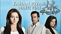 Yahan Pyar Nahin Hai (Urdu: یہاں پیار نہیں ہے, lit. 'There Is No Love Here') is a Pakistani drama serial that aired on Hum TV in February 2012, starring Saba Qamar, Junaid Khan, Mawra Hocane, Humaira Zaheer, and Farah Zeba as the main leads.[1]