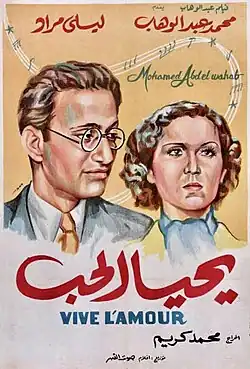 Yahya El Hub (Arabic: يحيا الحب, French: Vive l'amour)[1][2] is a 1938 Egyptian drama film written, directed by Mohammed Karim.[3][4][5][6] It stars Mohammed Abdel Wahab and Leila Mourad.[7][8][9][10]