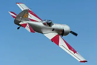 The Yakovlev Yak-50 (Russian: Яковлев Як-50) aerobatic aircraft is a single-seat all-metal low-wing monoplane with retractable main wheels and exposed tail wheel. The control surfaces are fabric-covered to save weight. The aircraft is not equipped with flaps.