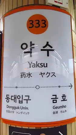 - ^ a b "Yaksu, Line 3". Seoul Metro. Archived from the original on 2017-02-02. Retrieved 2017-01-24.