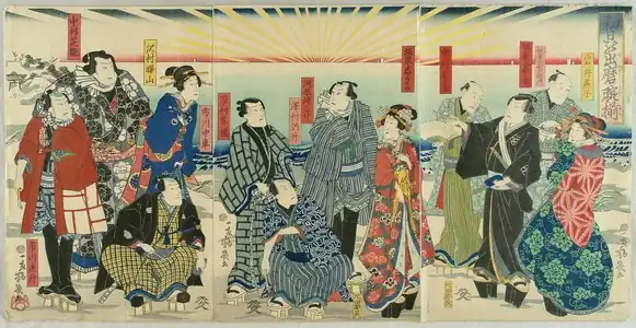 By the 1740s, artists such as Torii Kiyotada were making prints depicting not only the actors themselves, in portraits or in stage scenes, but the theaters themselves, including the audience, architecture, and various staging elements.