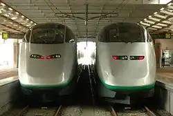 - ^ Trains bound for Tokyo run with Tohoku Shinkansen E5 or H5 trains.