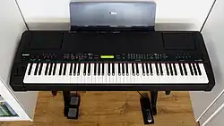 Introduced in 2006, the Yamaha CP300 offered similar specifications compared to the P250 it replaced. However, the primary sounds were significantly improved,[1] including emulation of "half-pedaling" effects, as well as sympathetic string resonance. The addition of "C" in the name is an homage to the mid-1970s CP series of electric stage pianos.[2] The success of the CP300 restarted the CP brand with other successful products in the series like the CP1 in 2009,[3] Reface CP in 2015, and the CP88 in 2019.[4]