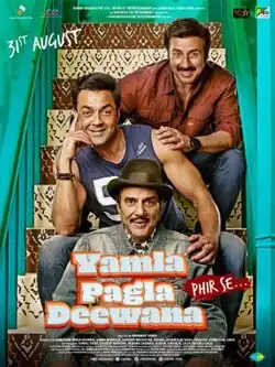 Yamla Pagla Deewana: Phir Se (transl. Crazy mad lover: Once again; Hindi pronunciation: [jəməla pəgəla d̪iːʋaːna pʰɪɾ seː]) is a 2018 Indian Hindi-language action comedy film directed by Navaniat Singh. It is a sequel to the Yamla Pagla Deewana, and Yamla Pagla Deewana 2 and the third installment of Yamla Pagla Deewana film series.[3][4] The film stars Dharmendra, Sunny Deol, Bobby Deol and Kriti Kharbanda in lead roles along with Binnu Dhillon, Mohan Kapoor and Asrani. The film had its worldwide theatrical release on 31 August 2018.[5] The film became a box office disaster and receive mixed to negative reviews from critics.