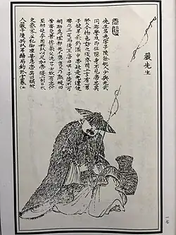 Liu Xiu offered Yan Ziling a high position in the court. Yan refused the offer, fearing he would become corrupt, and chose to live as a hermit in the mountains. This act made Yan Ziling a famous Chinese hero and gave him a place in the Wu Shuang Pu (無雙譜, Table of Peerless Heroes)[3] by Jin Guliang. The images and poems for this book are widely spread and reused over again, including in porcelain art[4]